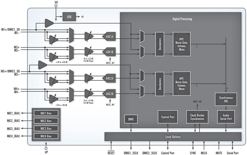- Selectablemicbias,digitalinterfacelogicvoltages