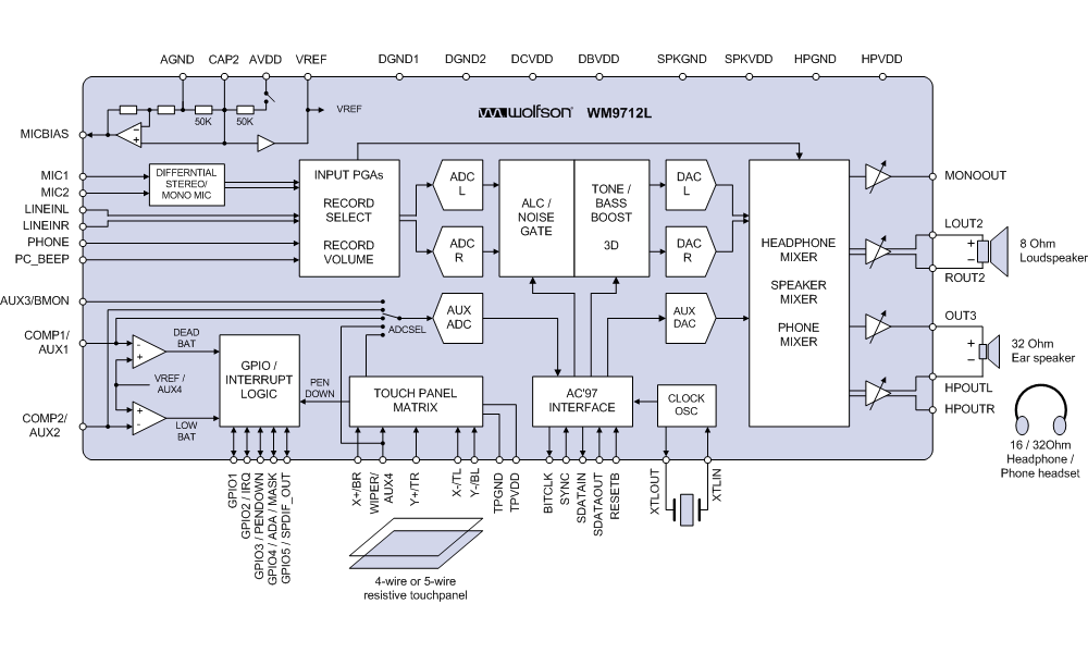 WM9712 - codec with Touchpanel Controller - 便携式编解码器 - 编解码器 - Cirrus Logic